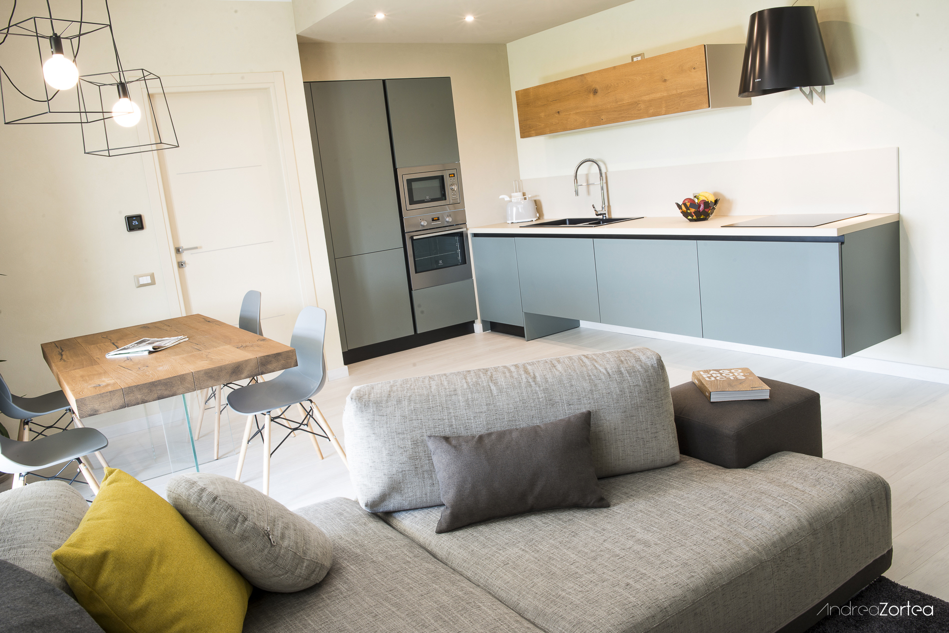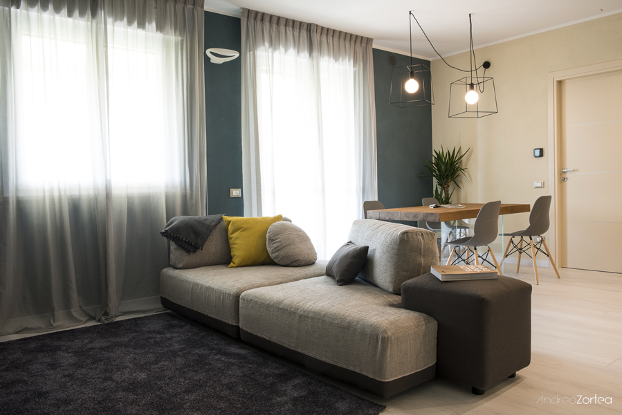 il progetto di un appartamento ristrutturato completamente dai pavimenti ai rivestimenti, dalle tinte murali all’illuminazione, dall’arredamento alle tende.