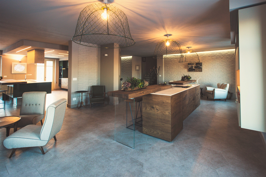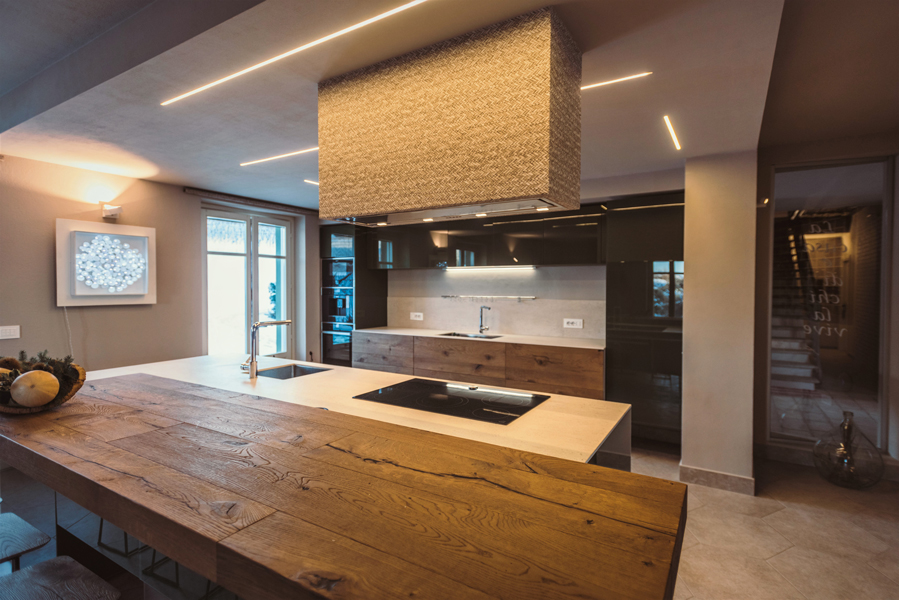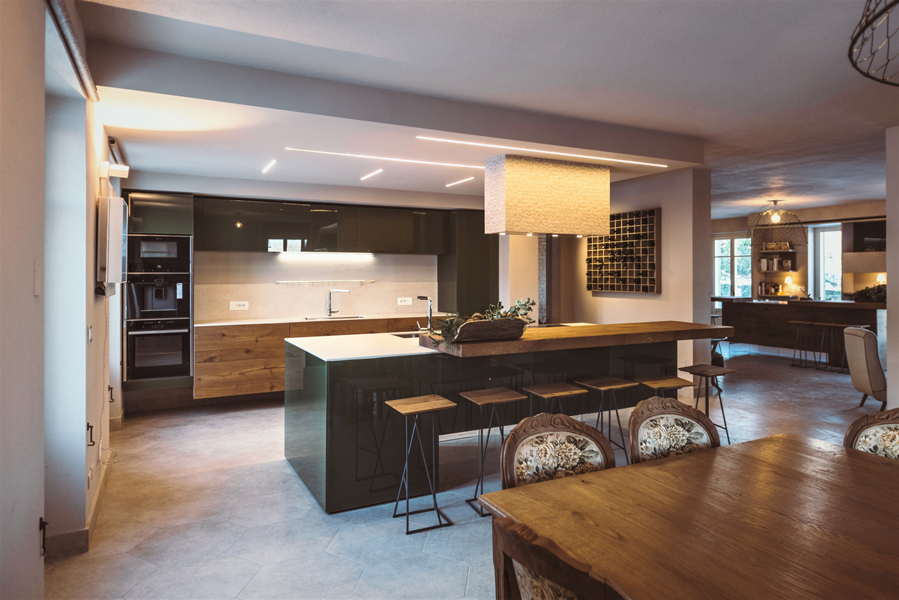 Un bellissimo progetto per una casa vacanze che ospita tante persone. La cucina e il bar 36e8 di Lago realizzati in questa villa sono decisamente da favola. Vetro lucido verde bosco e Legno wildwood naturale convivono splendidamente. Il piano in Dekton impreziosisce anche la funzionalità che è al servizio di chi vive l’ambiente. Un materiale resistente ad ogni tipo di graffio e calore. Accogliente, ricercata e unica, un bellissimo ambiente da vivere in compagnia.